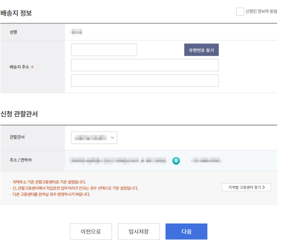 마지막으로 고용보험 가입정보및 카드배송지 정보를 기입하시면 가입이 완료됩니다.