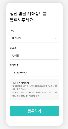등록된 자신의 계좌로 매 주마다 정산을 받기 때문에 자신이 일한 만큼 바로바로 현금을 사용할 수 있습니다.