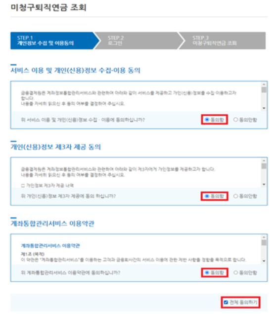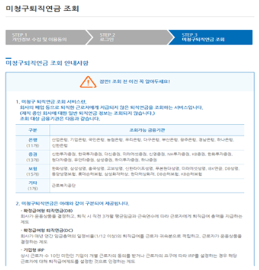 미청구 퇴직연금 조회 서비스 이용방법