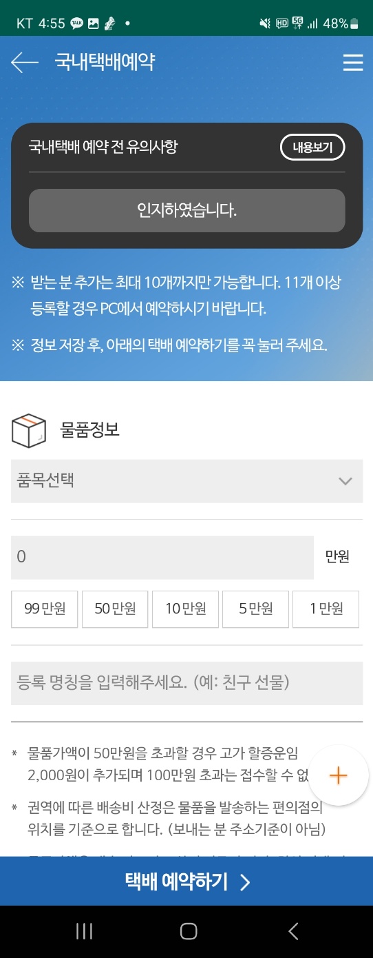 - 택배예약 완료 및 편의점방문하여 물건 발송하기