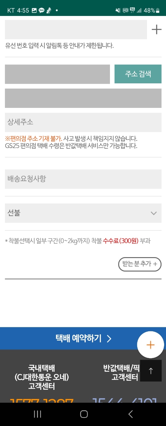 우선 gs모바일 앱을 다운받아 아래양식을 작성하여 편의점에서 방문하면 빠르고 쉽게 배송할수있습니다.